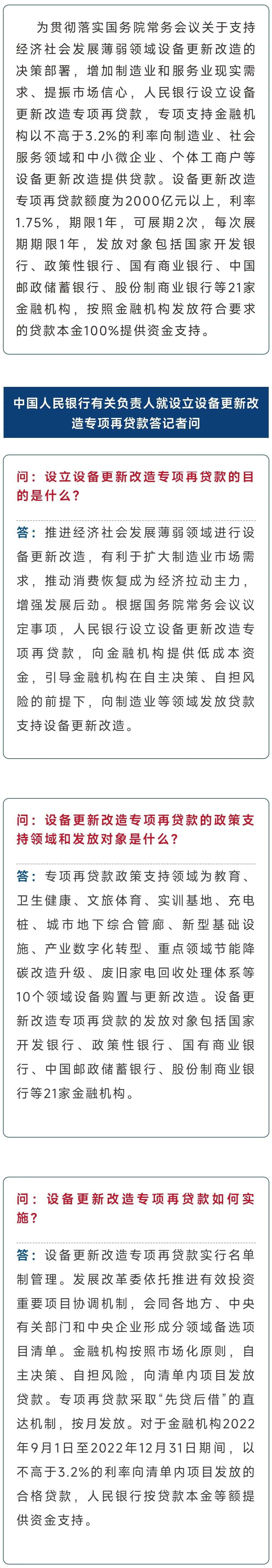中國(guó)人民銀行設(shè)立設(shè)備更新改造專(zhuān)項(xiàng)再貸款支持制造業(yè)等領(lǐng)域設(shè)備更新改造(附答記者問(wèn))